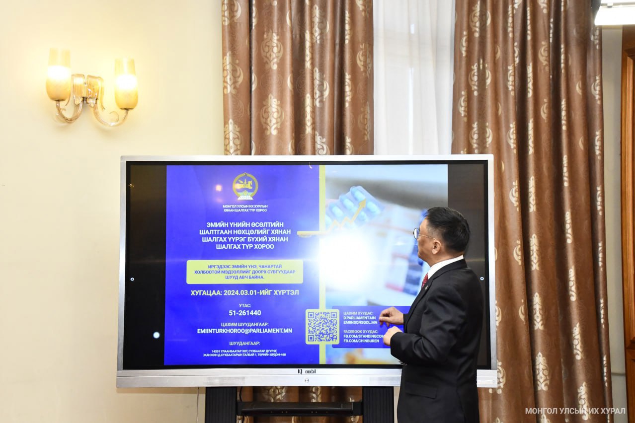 Түүнчлэн Хянан шалгах түр хороо ажиллах явцад холбогдох зөрчил илэрч байгааг нарийвчлан шалган судлах, шаардлагатай нотлох баримтыг цуглуулах чухал байгааг онцлов. Тухайлбал, Монгол Улсын эмийн бүртгэлд бүртгэгдсэн эм, эмчилгээнд хэрэглэгдэх журам зөрчигдөж байгаа бөгөөд 2018-2023 онд 155 нэрийн 25600 гаруй бүртгэлгүй буюу улсын бүртгэлтэй эмийн загвараас зөрүүтэй хуурамч гэж үзэж болохуйц эм илэрсэн.